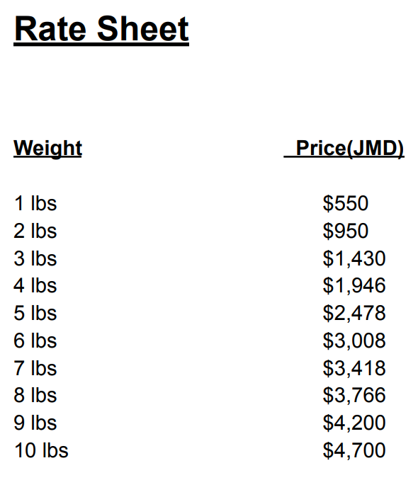 Packages leave the US on every wednesday and take 6-8 days to arrive in jamaica.